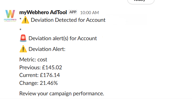 Monitor spend, impressions, and clicks for unusual changes, get notified via Email or Slack, and automatically pause campaigns when budgets are exceeded.