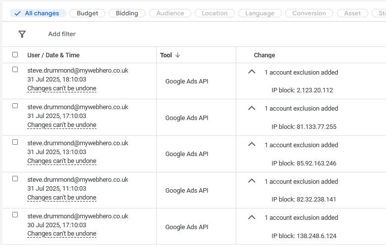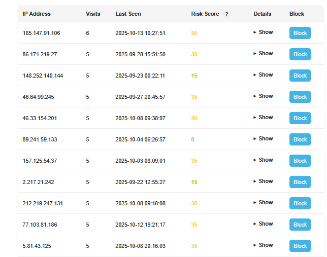 Log every visitor’s IP and activity automatically, review high-frequency or suspicious activity, and push blocks straight to Google Ads.